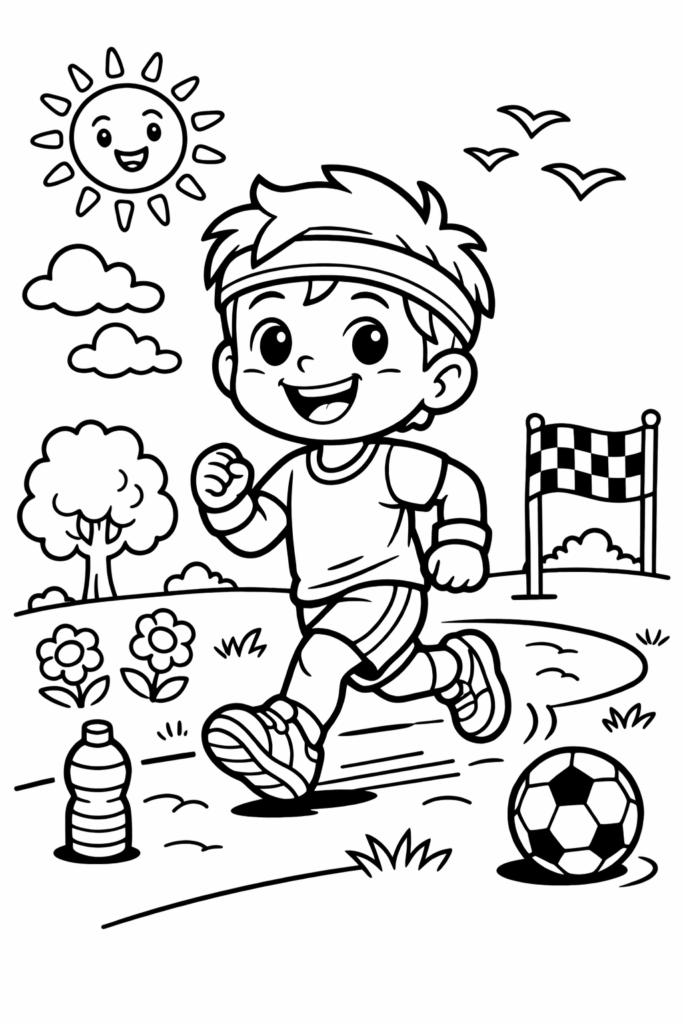 Le dessin représente un personnage joyeux en train de faire du sport (course à pied),